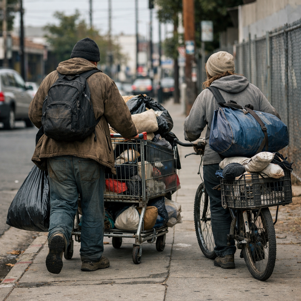 This photograph illustrates the best of conditions in homeless suburbia. If I showed you skid row where they’re all lined up on the cold, dark cement sidewalks of Sacramento, hundreds with very few tents, huddled together for warmth and protection from the elements, it would, or should, break your heart!